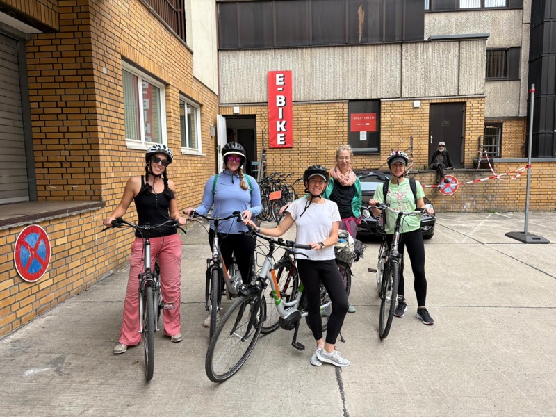 Friday was our day to tour the City. We met Christiane at an e-bike rental shop in the morning and we headed on our way. Biking was an AWESOME way to see the City. We had all been to Berlin before so we were not exactly museum hopping, but we biked through a lot of the neighborhoods of the City. We started at Brandenburg Gate because that was where the marathon was going to end so we needed to scope it out.
