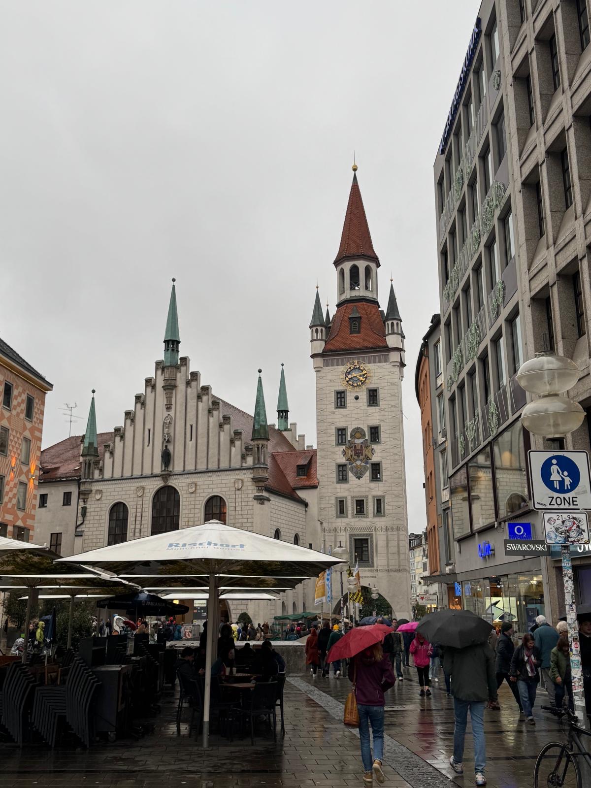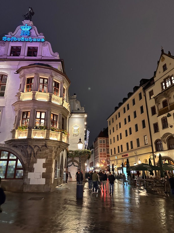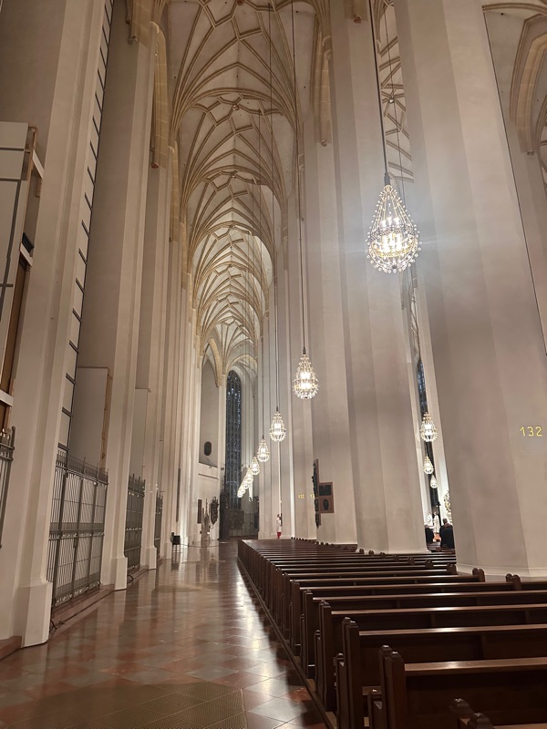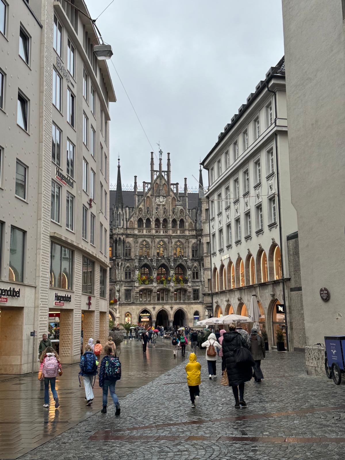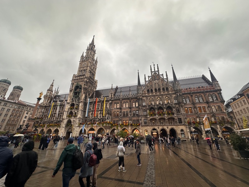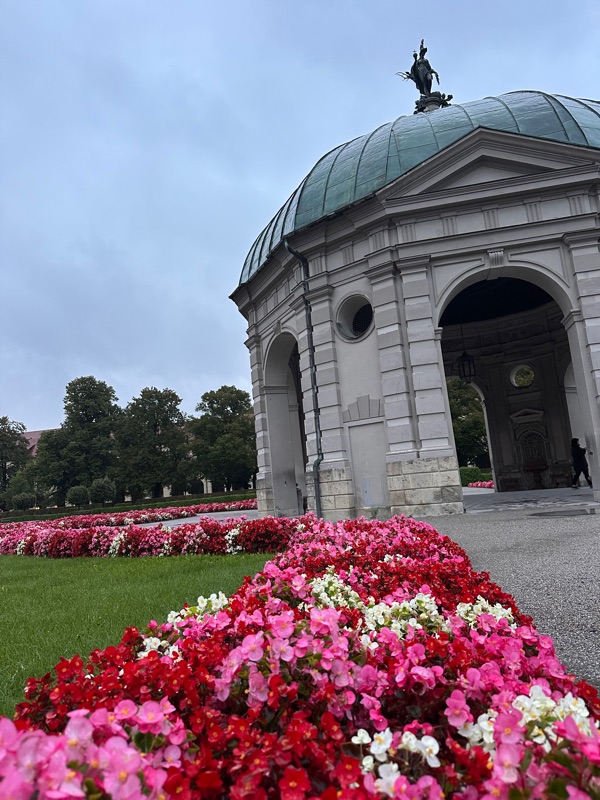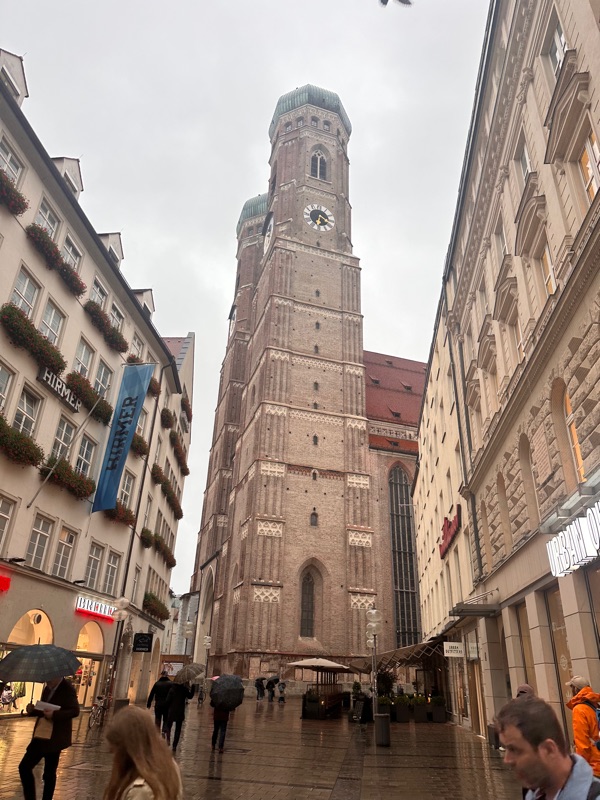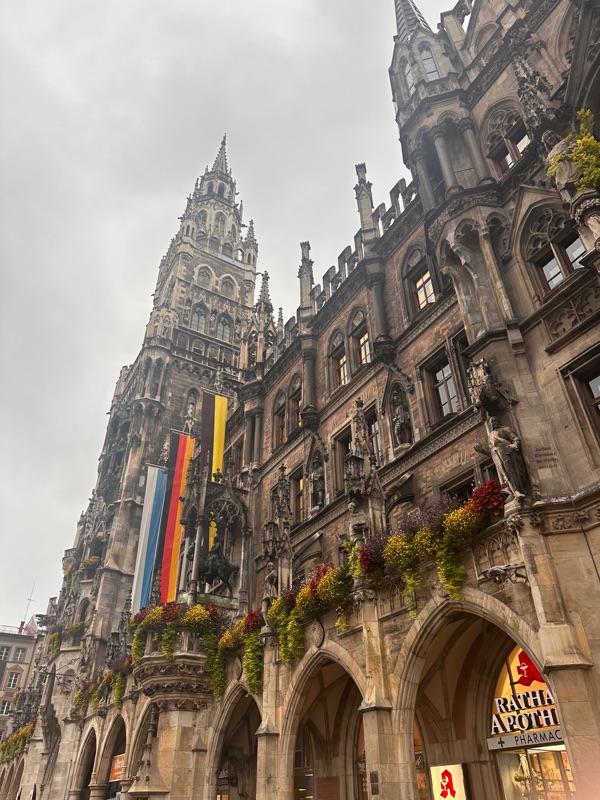 From there we strolled around the city and window shopped, all of the lovely and fancy dirndls in the shops, and we saw the cathedral which was beautiful. There was a palace here too, the Munich residence, which was very different from the palace we had seen before. This one had a much more painted-on facade with less architectural detailing. This was because it had been damaged in the war and when they rebuilt it they wanted to “update it” rather than spend money on recreating what was older. There were some lovely gardens and paseos as well, it was a beautiful City!