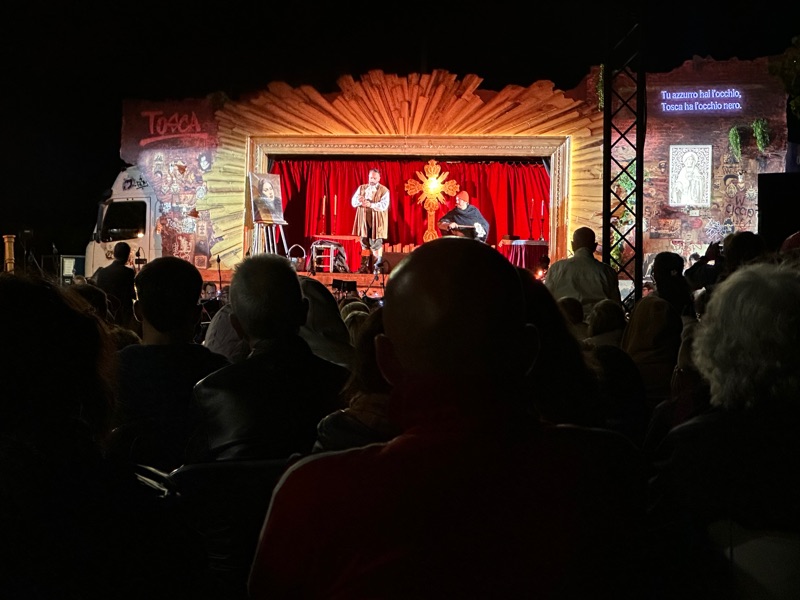 For our evening activity Livia found the traveling Roman Opera, the Teatro dell’Opera di Roma! Basically there is an effort to bring the opera to neighborhoods around Rome to make it more accessible to the community. So the stage was made from a shipping container and trucked in to a street in a neighborhood about 30 minutes from Livia’s house called Muncipio XIV. We brought some chairs from her balcony and sat there and watched a great performance of the opera Tosca. It was of course in Italian but I got the gist of it, and the singling was just amazing. It was a very cool “locals only” experience.