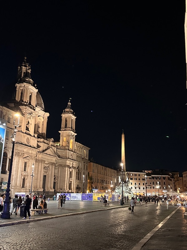 Livia had to do some work for her environmental psychology class so after a little chill time, we headed into the City Center for another passagiata through my old stomping grounds. I lived in Campo di Fiori which was still going string as I remember. Piazza Navona was beautiful but some scaffolding had a huge billboard up which wasn’t exactly picturesque. We walked by the Pantheon and there was a woman randomly singing opera in the portico of the Pantheon, which was pretty epic. And finally landed in Piazza di Pietra by Largo Argentina, which was the granddaddy of adaptive reuse - a Greek temple turned into a Roman building and now used for… offices. We had wine and I had a couple Hugos (I developed a liking for this drink in Germany) and we ended up closing the bar. Our waiter, Luca, was very nice. We asked him how many of those flying light-up helicopters he thinks the street vendors sell in a day. He told us he was drunk once and convinced them to sell him one for 1 euro but they are usually 5 euro. Just tourist after tourist totally loving them, it was crazy, considering how annoying they are. Anyway, we had a walk back t the car and retired for the evening!